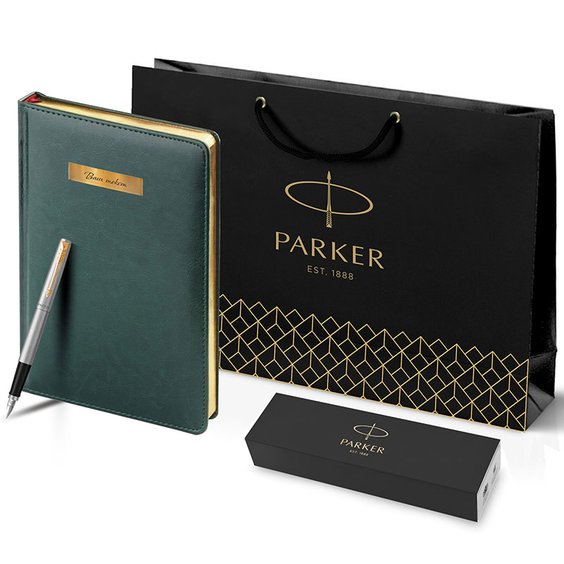 Набор Parker Jotter Stainless Steel GT из перьевой ручки и зеленого ежедневника недатированного в Санкт-Петербурге